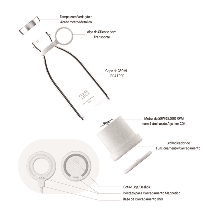 Liquidificador Portátil e Mixer Sem Fio - Fresh Mixer